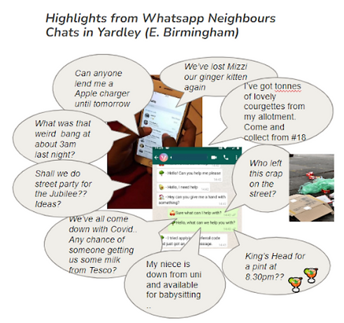 We saw these groups spring up during early 2020 in the early stages of the pandemic. Lots of people set up groups to share information, and offer one another immediate help for people shielding or ill (e.g. shopping or getting medicine). We wrote about this in ethnographic-research we did for the London Mayor and produced toolkits to advise neighbours how to run these groups. And we’ve always been keyed into the power of these groups – I used to work as a researcher for Facebook and Whatsapp, talking to people around the world about the value of belonging to these groups.